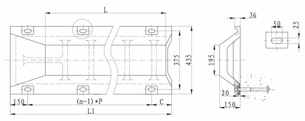 预埋件I,用于将护舷安装在现浇混凝土上。