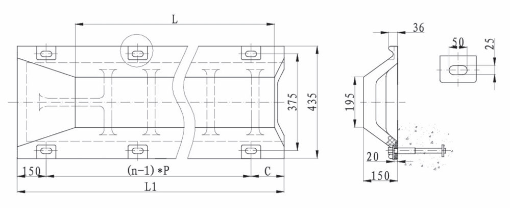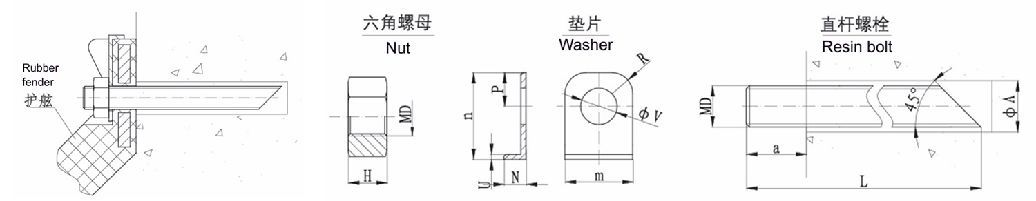 预埋件II,用于将护舷安装在已有混凝土上。