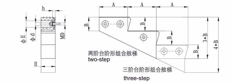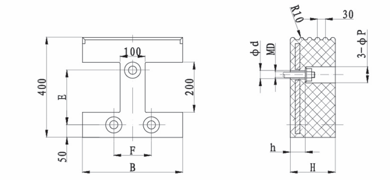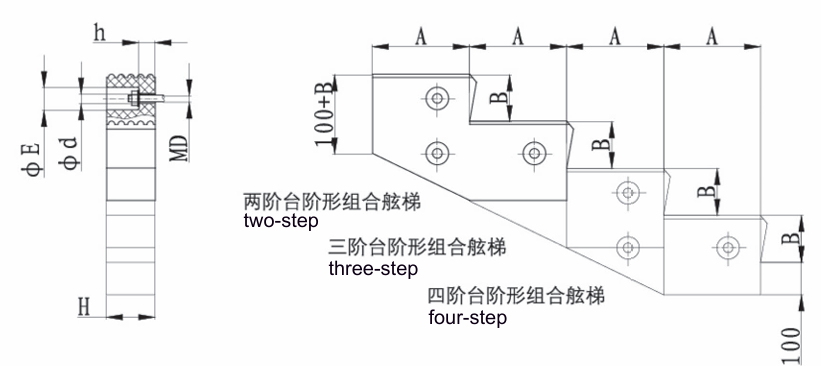 | 规格 | A | B | H | h | E | d | MD |